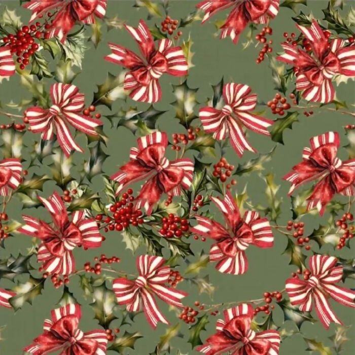 Tecido Tricoline Digital Natal Laços Fundo Verde