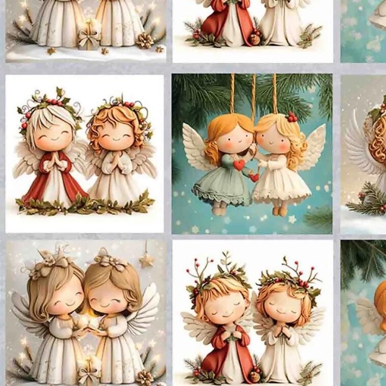 Descrição Tecido Tricoline Digital Natal Painel Anjinhos
