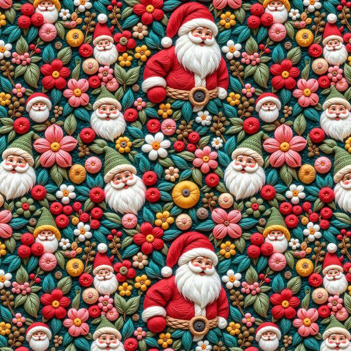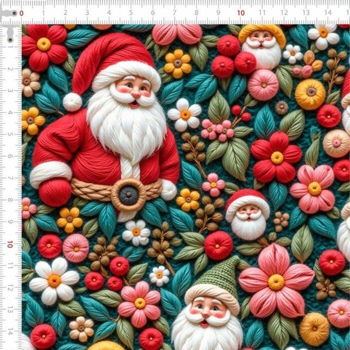 Descrição Tecido Tricoline Digital Natal Papai Noel Floral