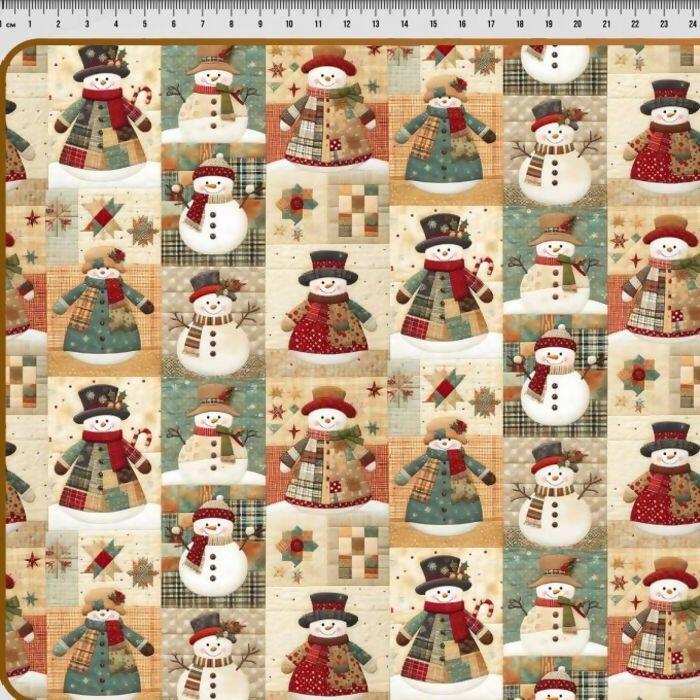 Tecido Tricoline Digital Natal Patchwork Boneco de Neve Pequeno