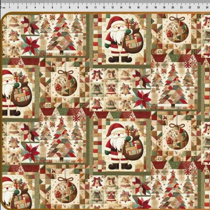 Descrição Tecido Tricoline Digital Natal Patchwork Papai Noel Grande