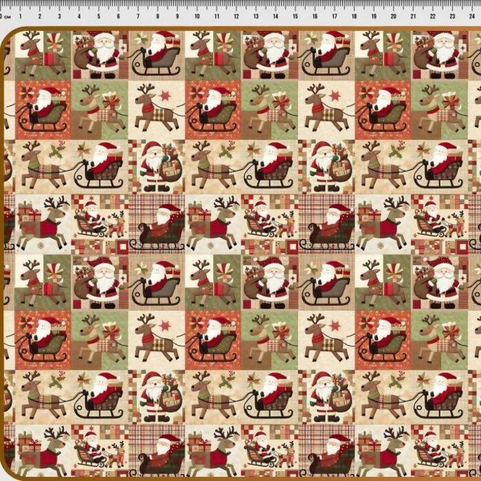 Descrição Tecido Tricoline Digital Natal Patchwork Papai Noel Pequeno