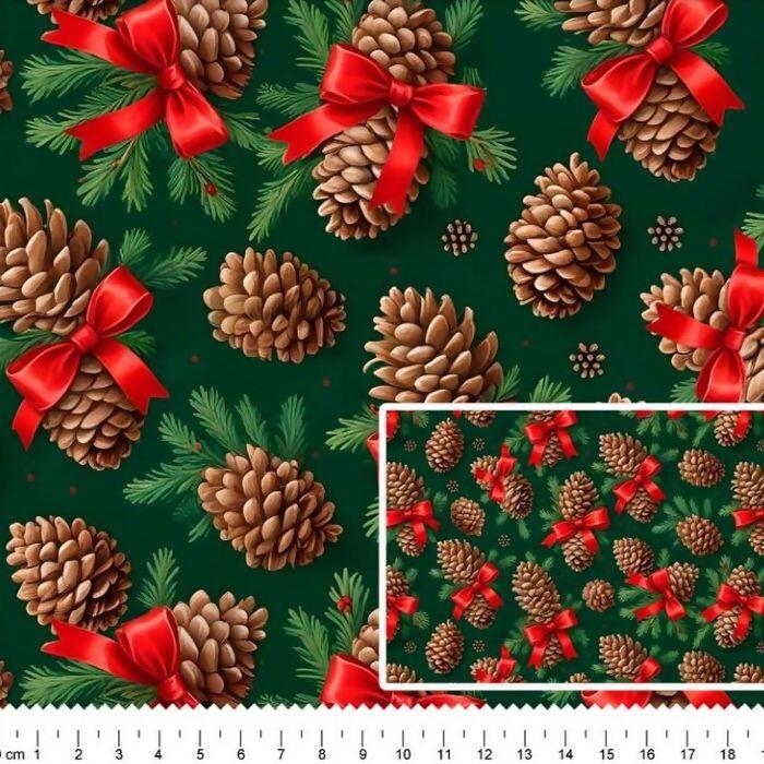 Descrição Tecido Tricoline Digital Natal Pinha Fundo Verde
