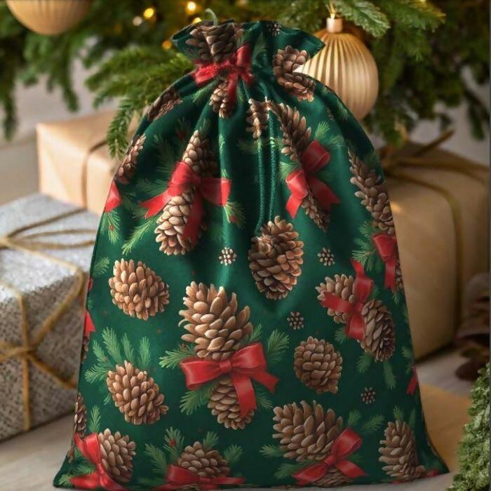 Tecido Tricoline Digital Natal Pinha Fundo Verde