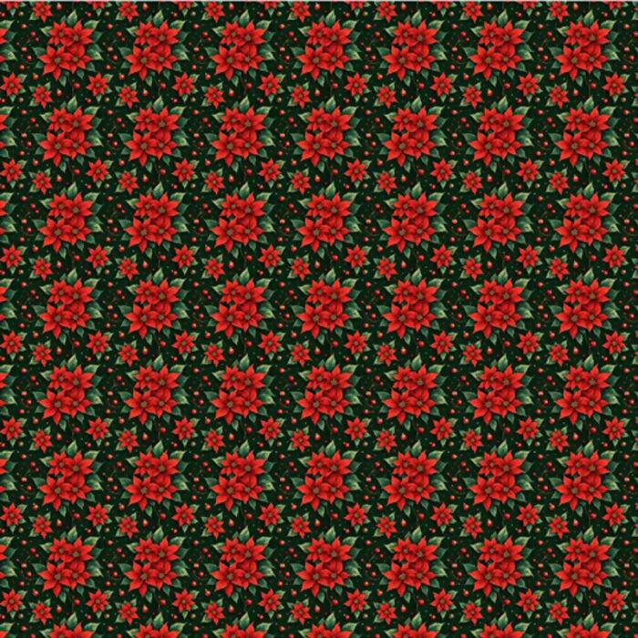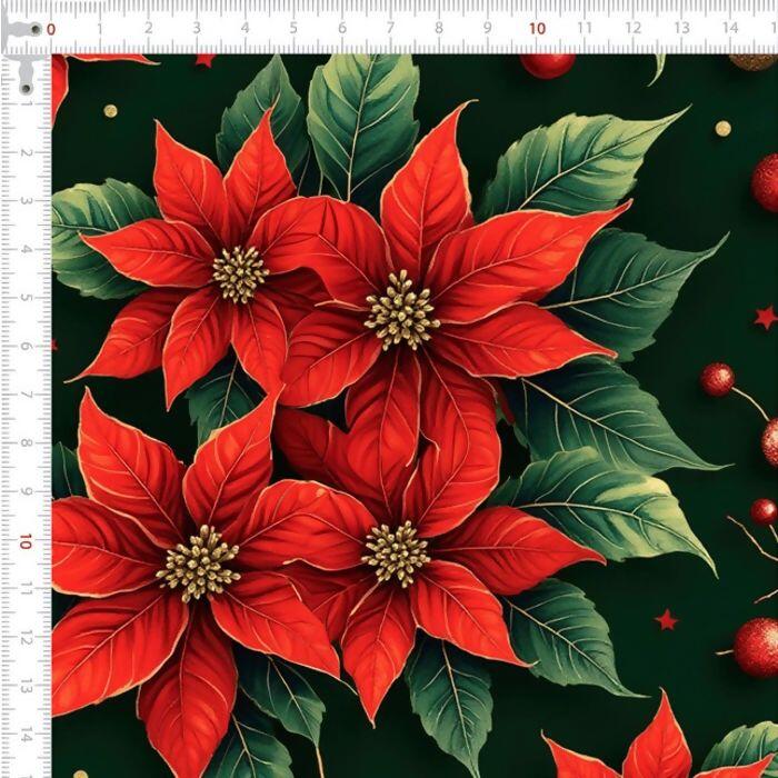 Descrição Tecido Tricoline Digital Natal Poinsetia Fundo Verde