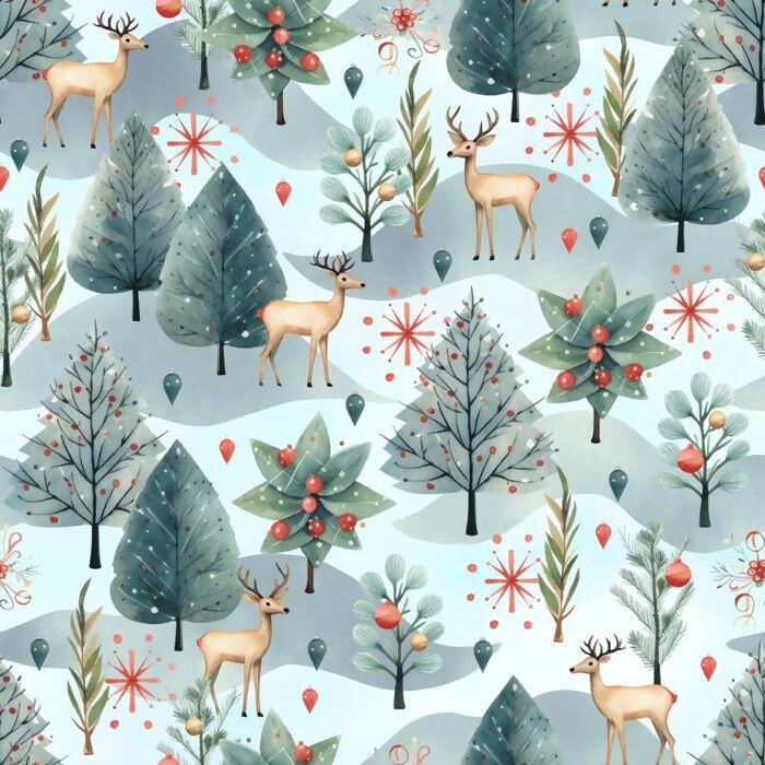 Tecido Tricoline Digital Natal Renas Neve