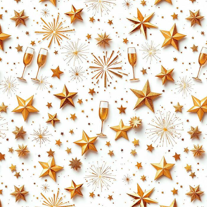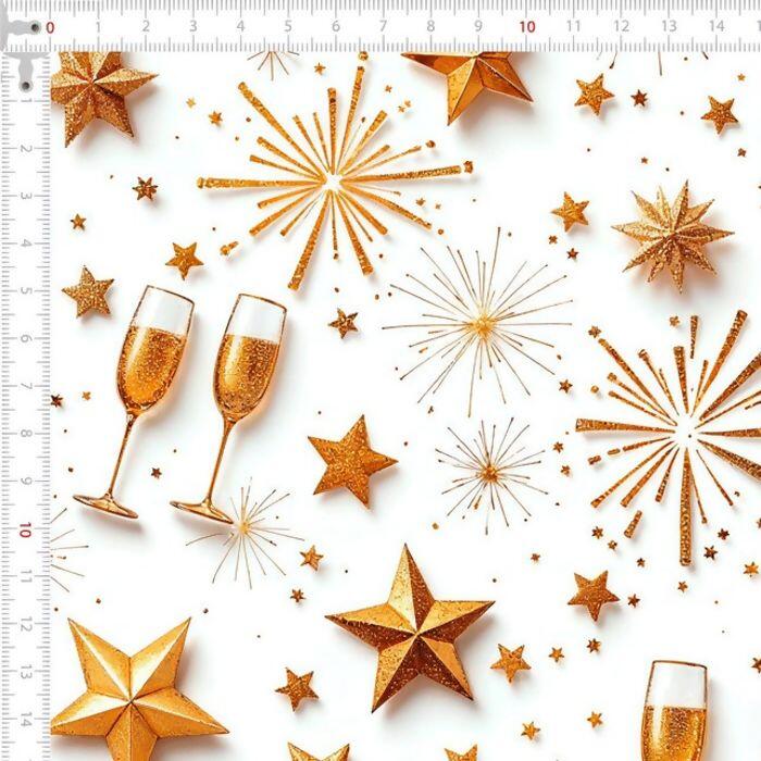 Descrição Tecido Tricoline Digital Natal Reveillon Dourado