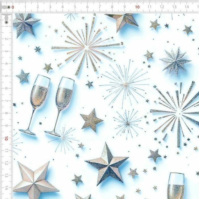 Descrição Tecido Tricoline Digital Natal Reveillon Prata