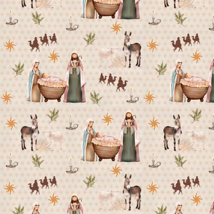 Descrição Tecido Tricoline Digital Natal Sagrada Família