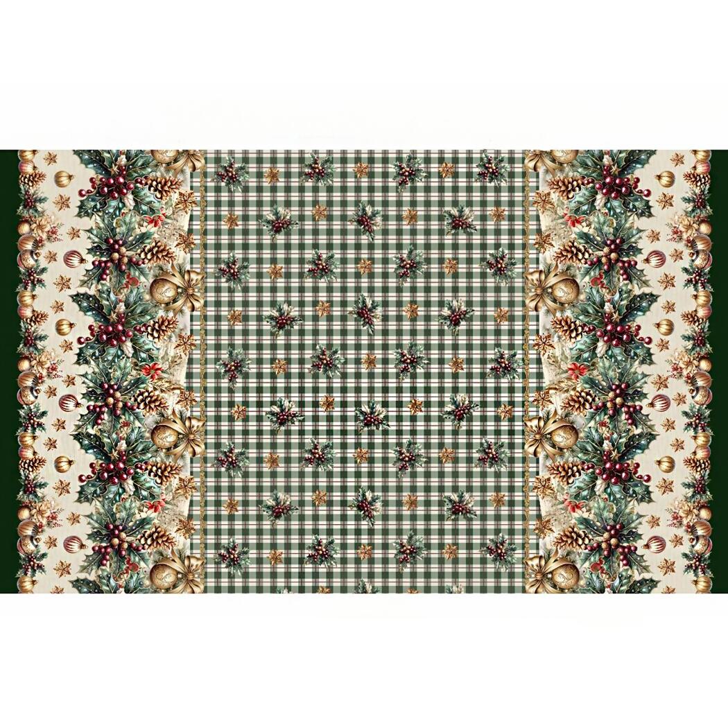 Descrição Tecido Tricoline Digital Natal Toalha de Mesa Gold