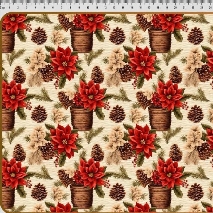 Descrição Tecido Tricoline Digital Natal Vintage Bico de Papagaio