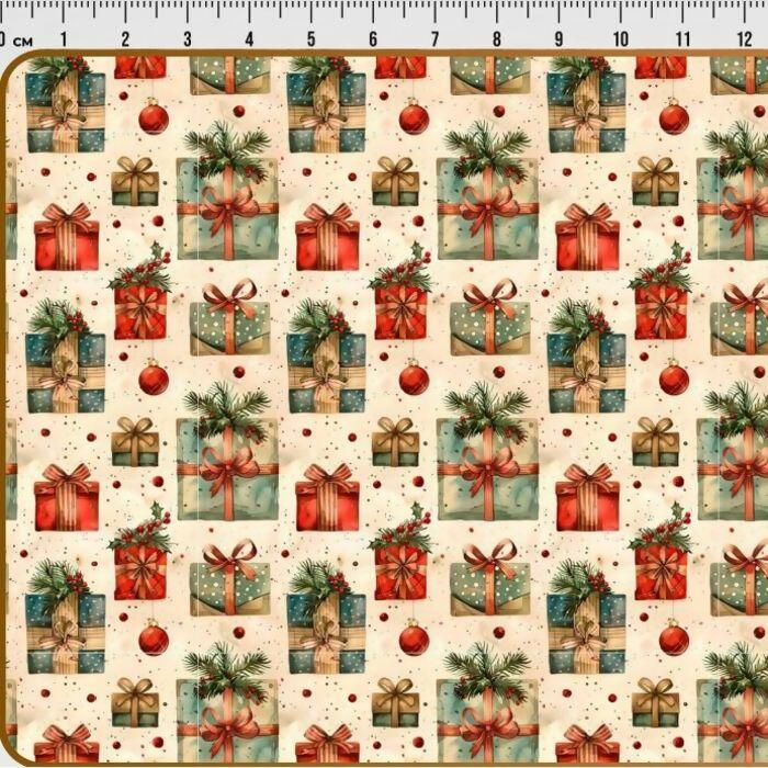 Tecido Tricoline Digital Natal Vintage Presentes
