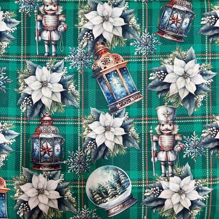 Descrição Tecido Tricoline Digital Natal Xadrez Verde