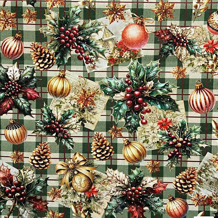 Descrição Tecido Tricoline Digital Natal Xadrez Verde