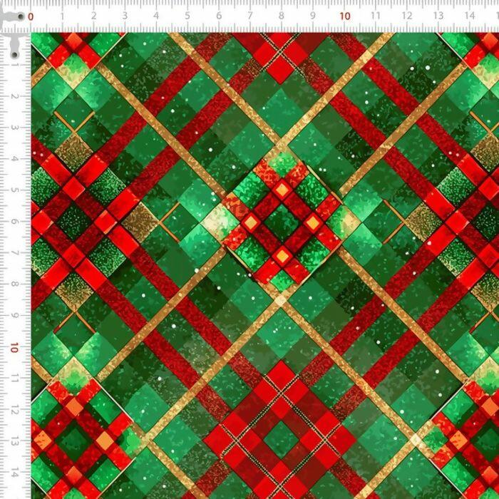 Tecido Tricoline Digital Natal Xadrez Vermelho e Verde