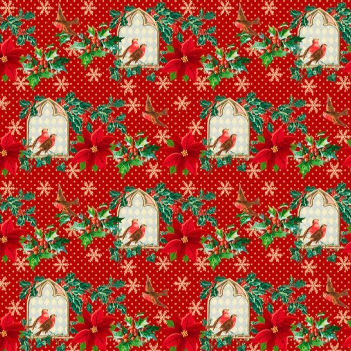 Descrição Tecido Tricoline Digital Natalino Fundo Vermelho