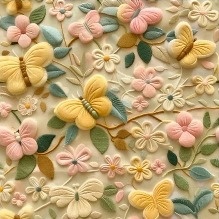 Descrição Tecido Tricoline Digital Natureza Borboletas Creme