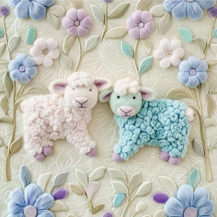 Descrição Tecido Tricoline Digital Natureza Ovelhas Lilás