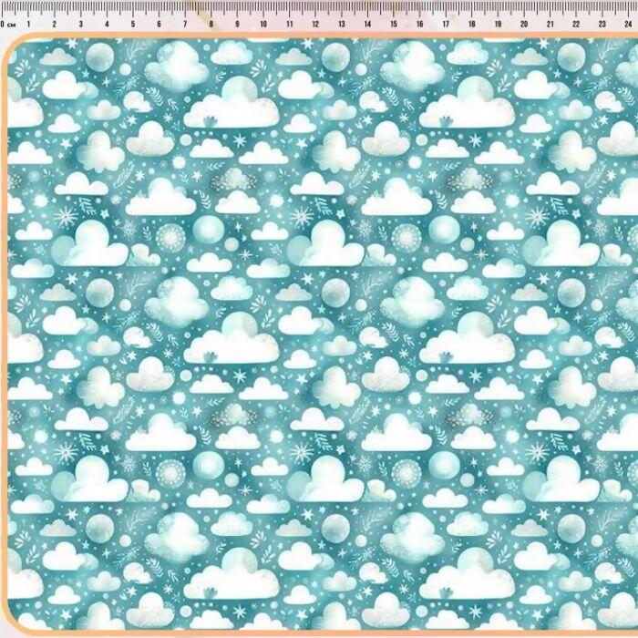 Descrição Tecido Tricoline Digital Nuvens Fundo Azul
