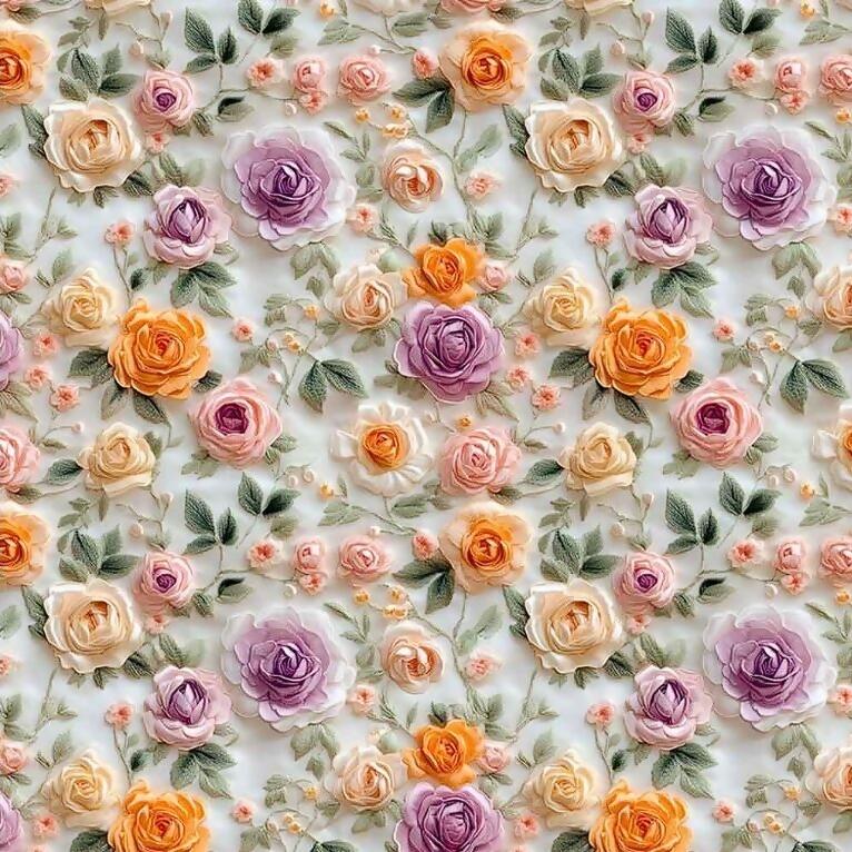 Descrição Tecido Tricoline Digital Orange Purple Flores Cheias