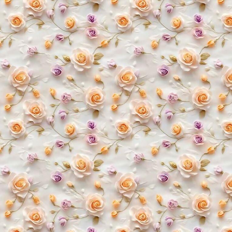 Descrição Tecido Tricoline Digital Orange Purple Flores