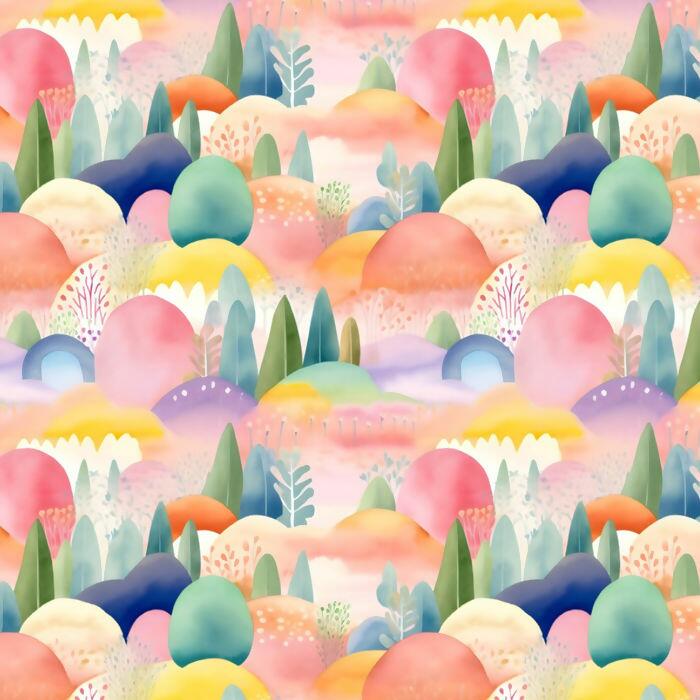 Descrição Tecido Tricoline Digital Paisagem Pastel 1