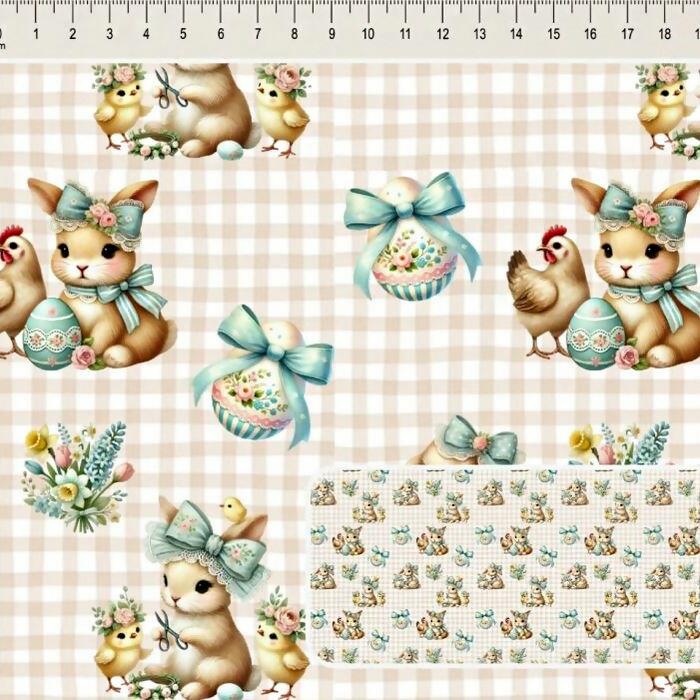 Descrição Tecido Tricoline Digital Páscoa Animaizinhos Xadrez
