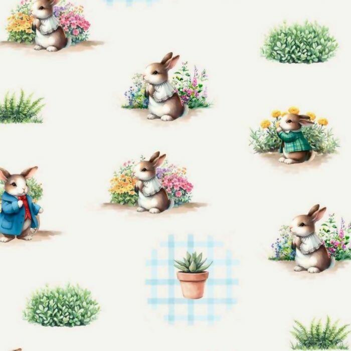 Tecido Tricoline Digital Páscoa Bolt Coelhos e Plantas