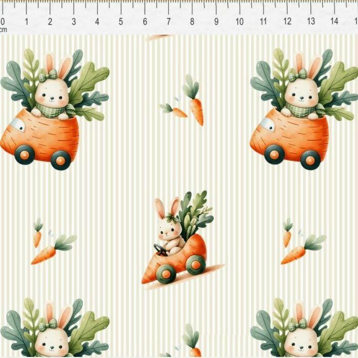 Tecido Tricoline Digital Páscoa Carrinho de Cenoura