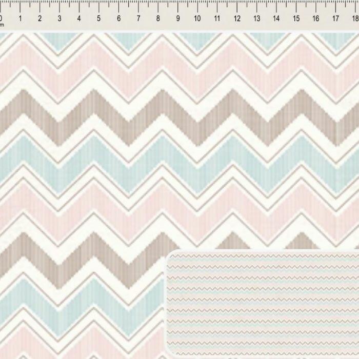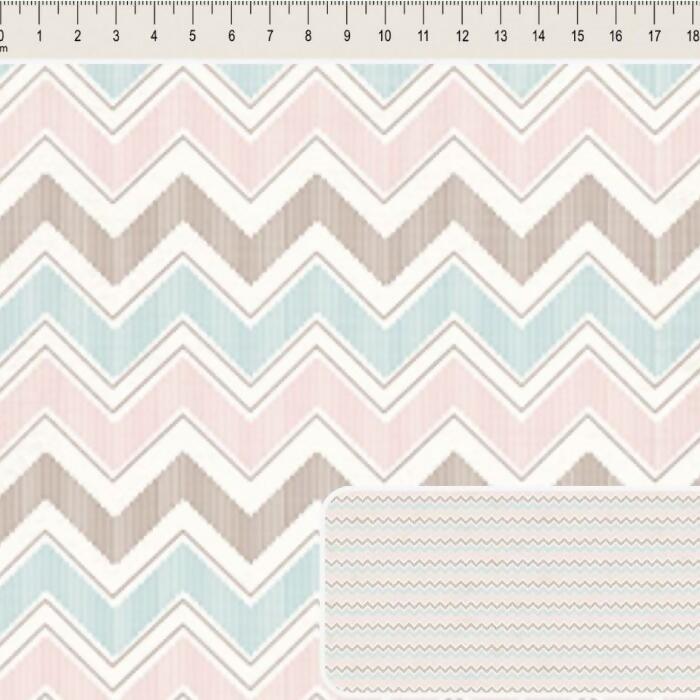 Tecido Tricoline Digital Páscoa Chevron Azul e Marrom