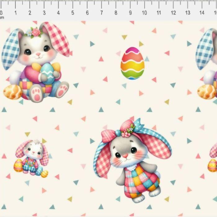 Tecido Tricoline Digital Páscoa Coelha Fundo Creme