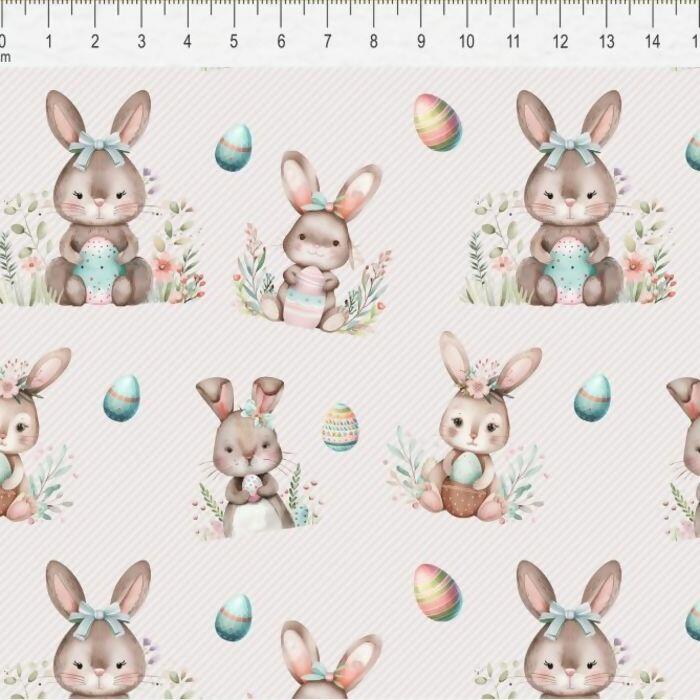 Descrição Tecido Tricoline Digital Páscoa Coelha Fundo Listrado