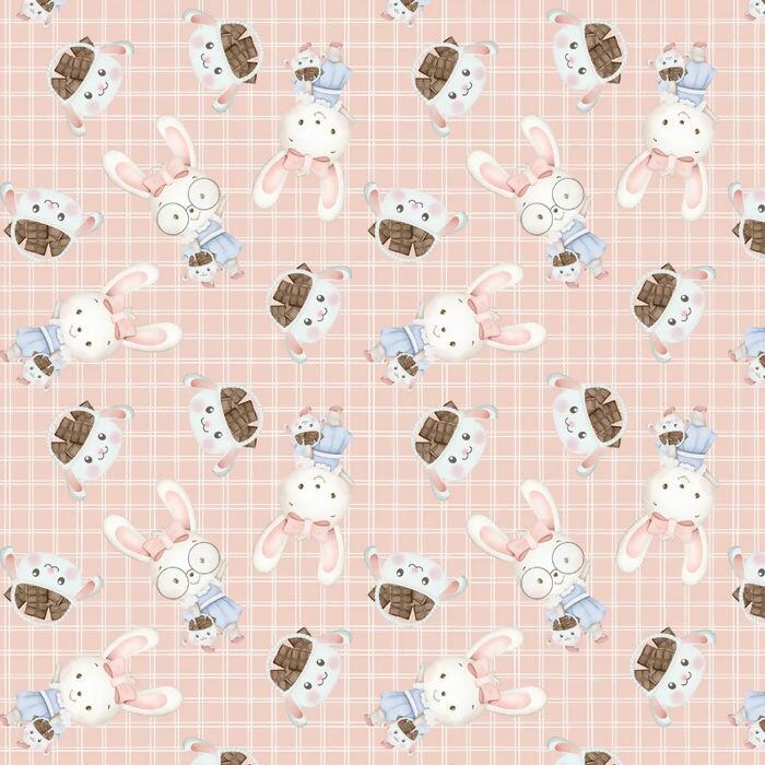 Descrição Tecido Tricoline Digital Páscoa Coelhinha Fundo Rosa