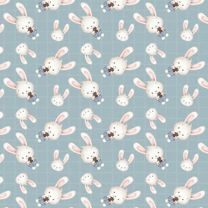 Tecido Tricoline Digital Páscoa Coelhinho Fundo Azul
