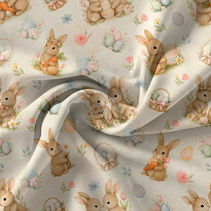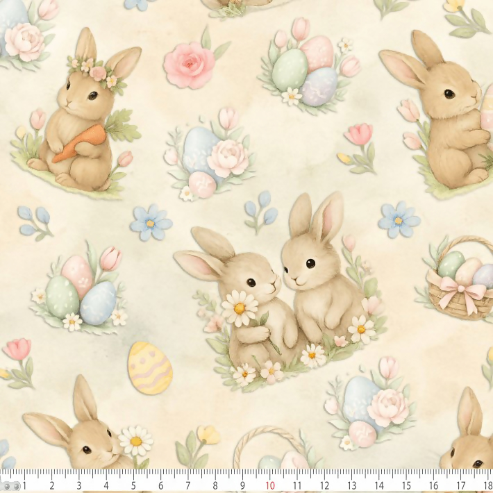 Tecido Tricoline Digital Páscoa Coelhinhos Fundo Creme