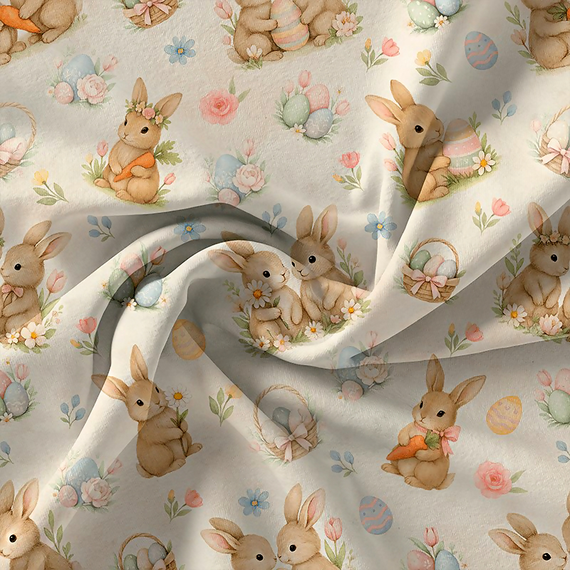 Descrição Tecido Tricoline Digital Páscoa Coelhinhos Fundo Creme