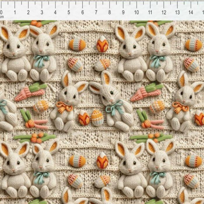 Descrição Tecido Tricoline Digital Páscoa Coelhinhos Fundo Tricô
