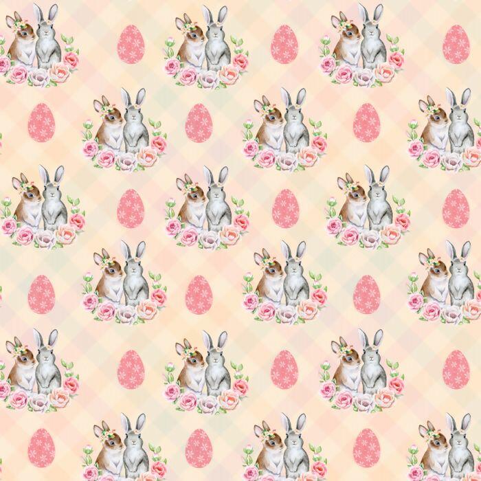 Descrição Tecido Tricoline Digital Páscoa Coelhinhos Sentados Flores Fundo Bege