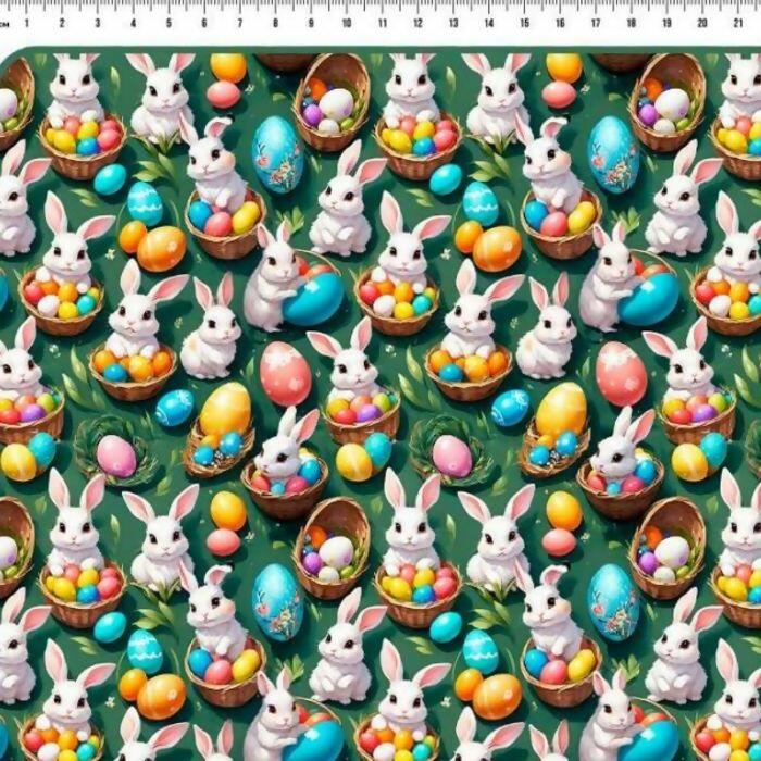 Descrição Tecido Tricoline Digital Páscoa Coelhos Cesto