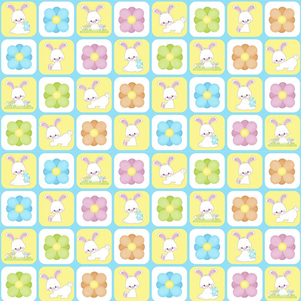 Descrição Tecido Tricoline Digital Páscoa Coelhos e Flores Quadriculado