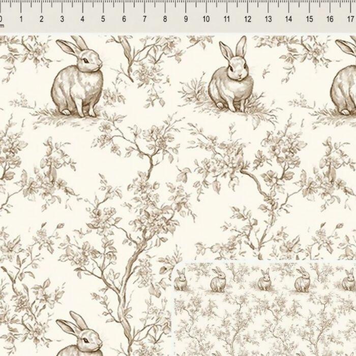 Tecido Tricoline Digital Páscoa Coelhos Fendi