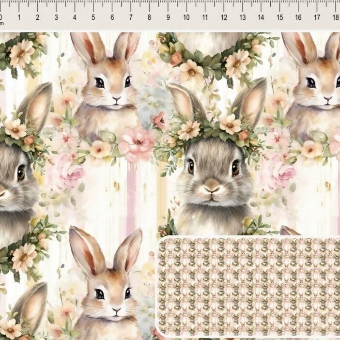 Descrição Tecido Tricoline Digital Páscoa Coelhos Floral