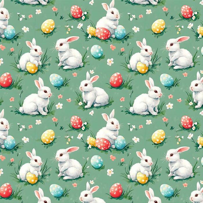 Descrição Tecido Tricoline Digital Páscoa Coelhos Fundo Verde