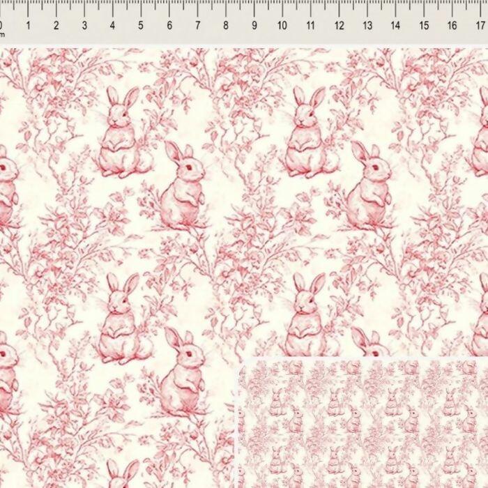 Descrição Tecido Tricoline Digital Páscoa Coelhos Rose