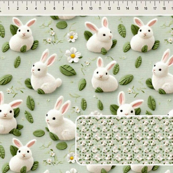 Descrição Tecido Tricoline Digital Páscoa Daisies Coelhinhos
