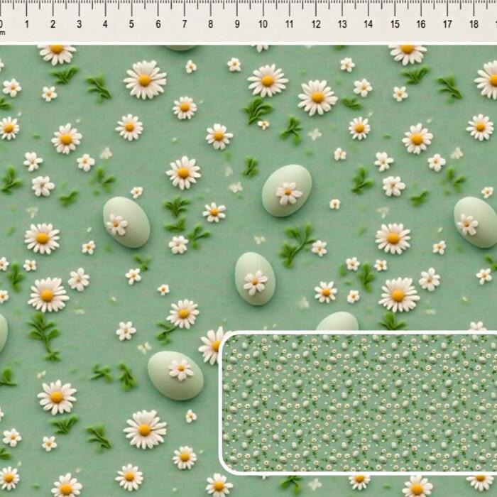Descrição Tecido Tricoline Digital Páscoa Daisies Verde
