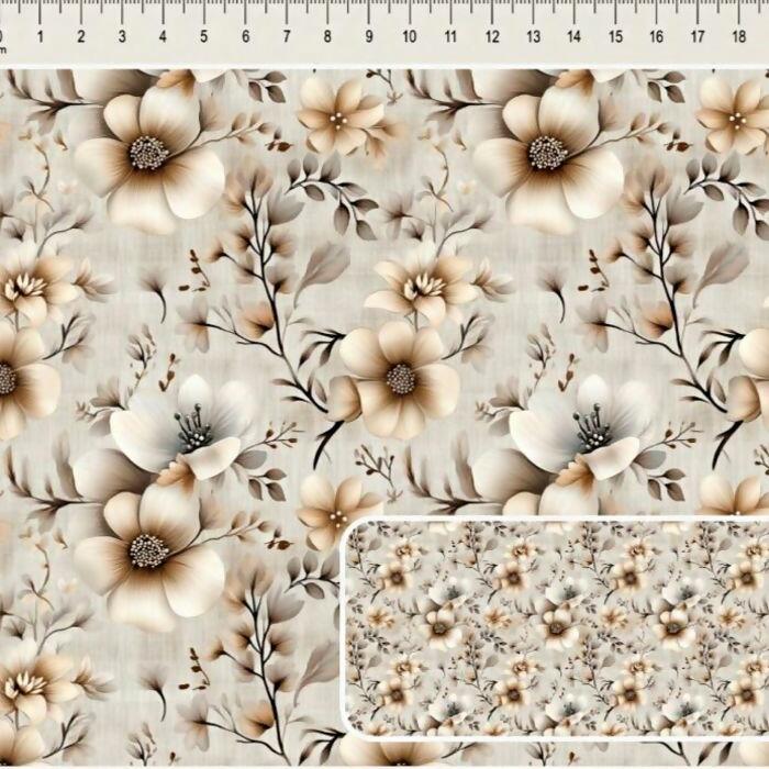 Descrição Tecido Tricoline Digital Páscoa Flor Boho