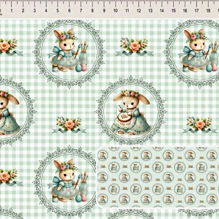 Descrição Tecido Tricoline Digital Páscoa Molduras Xadrez
