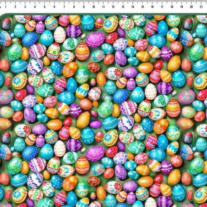 Descrição Tecido Tricoline Digital Páscoa Ovos Colorido