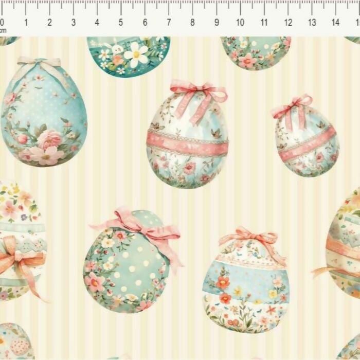 Descrição Tecido Tricoline Digital Páscoa Ovos Floridos